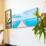 ご主人のこだわりのカウンターを中心としたミッドセンチュリーな空間に、最近はハワイアンテイストをプラス。