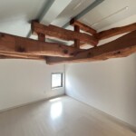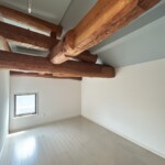 木の温もりと歴史を感じさせるこの梁は、あえて見せる設計にし、空間のアクセントとして存在感を放っています。