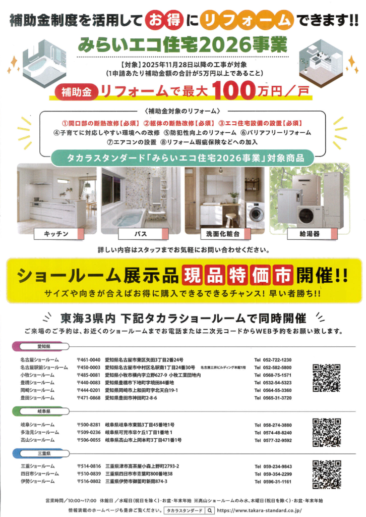今話題の補助金制度を活用したお得なリフォームのご相談も可能です。