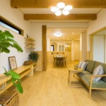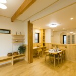 無垢の床の足触りが心地よいLDK。無垢と珪藻土が調湿性を発揮して、夏はジメジメ感を、冬は過乾燥を防ぎ、空気のきれいな快適空間をキープします。アレルギーの心配のない自然素材の空間で、すこやかな暮らしが実現しました。