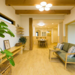 Fさまのおうちの1番の見どころは、無垢の木と珪藻土をつかったオーガニックな内装デザインです。アースカラーを基調にした落ち着く配色にまとめることで、シンプルで暮らしやすいおうちを意識しました。素材の表情やインテリアと統一感を出してボタニカル感を演出しています。また、珪藻土を生かして、リビングの壁にご家族みなさんの手形をつけました。思い出に残るような家づくりのお手伝いができ、僕たちもうれしかったことを覚えています。