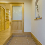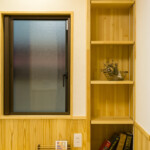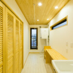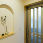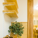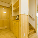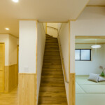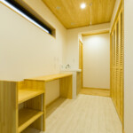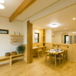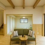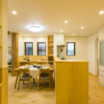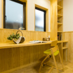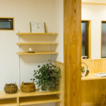 Fさまのおうちの1番の見どころは、無垢の木と珪藻土をつかったオーガニックな内装デザインです。アースカラーを基調にした落ち着く配色にまとめることで、シンプルで暮らしやすいおうちを意識しました。素材の表情やインテリアと統一感を出してボタニカル感を演出しています。また、珪藻土を生かして、リビングの壁にご家族みなさんの手形をつけました。思い出に残るような家づくりのお手伝いができ、僕たちもうれしかったことを覚えています。