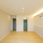 一方、2階の寝室やクローゼットには奥さま好みのクロスを用い、エレガントに演出。家事ラクな間取りにもこだわっています。「コーディネートの際には、『タツミ』さんの「CHU!の家」のモデルハウスがすごく参考になりました」という奥さま。自然素材の空間をベースに2つの異なる個性をブレンドし、仲良し夫婦ならではのオンリーワンの木の家が実現しました。
