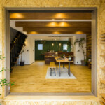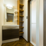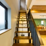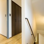 道路沿いでひときわ目を引くクールな外観。3階建てのO様邸は、1階にLDK、2階に水回りと寝室、3階に子ども部屋を設け、家族5人が悠々と暮らせる空間を確保しました。玄関と一体化した広い土間は掃出窓からも直接出入りでき、サーフボードの出し入れもラクラク。サーフィン好きなご家族のために、サーフボードの収納スペースをご用意しました。