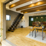 土間リビングが開放的な3階建ての家